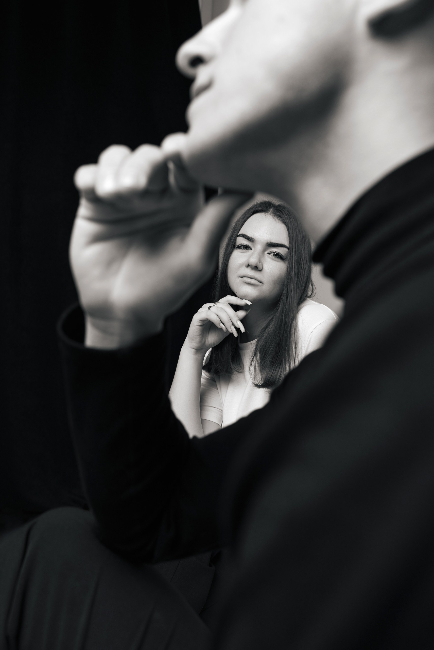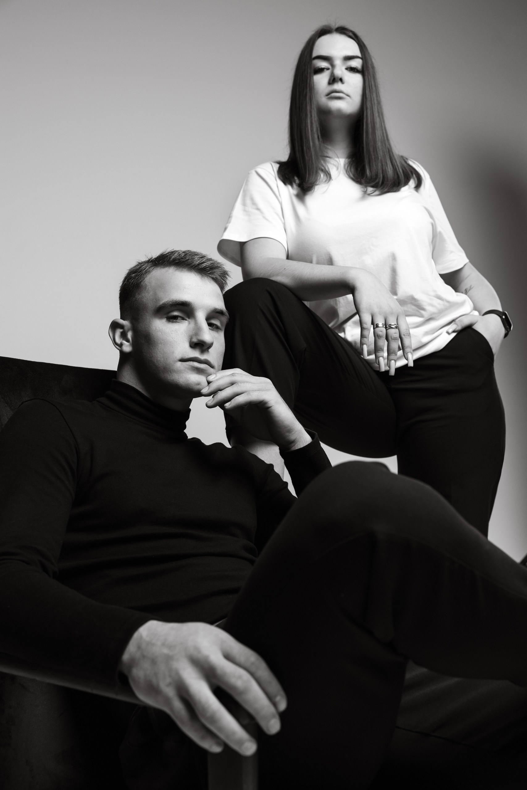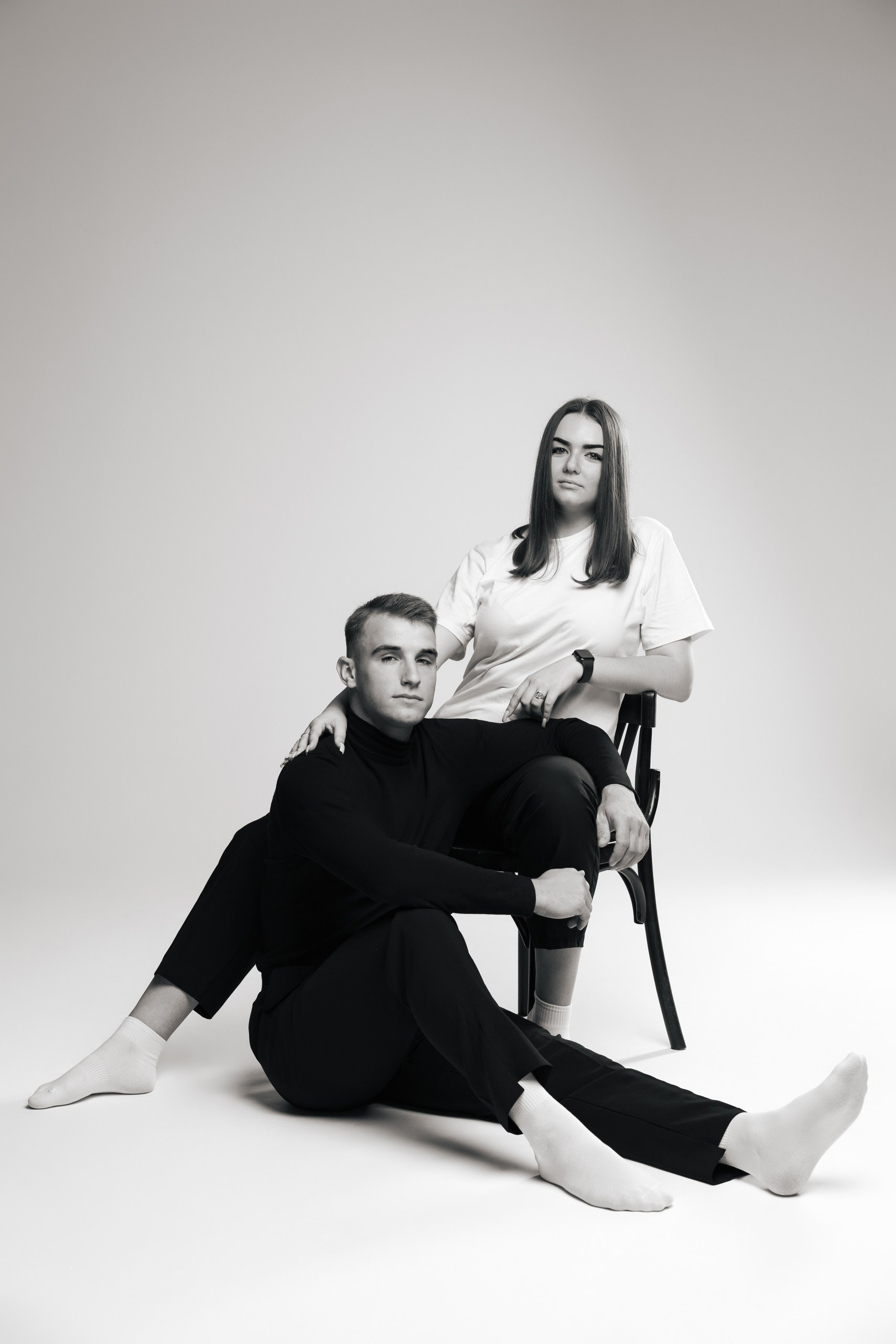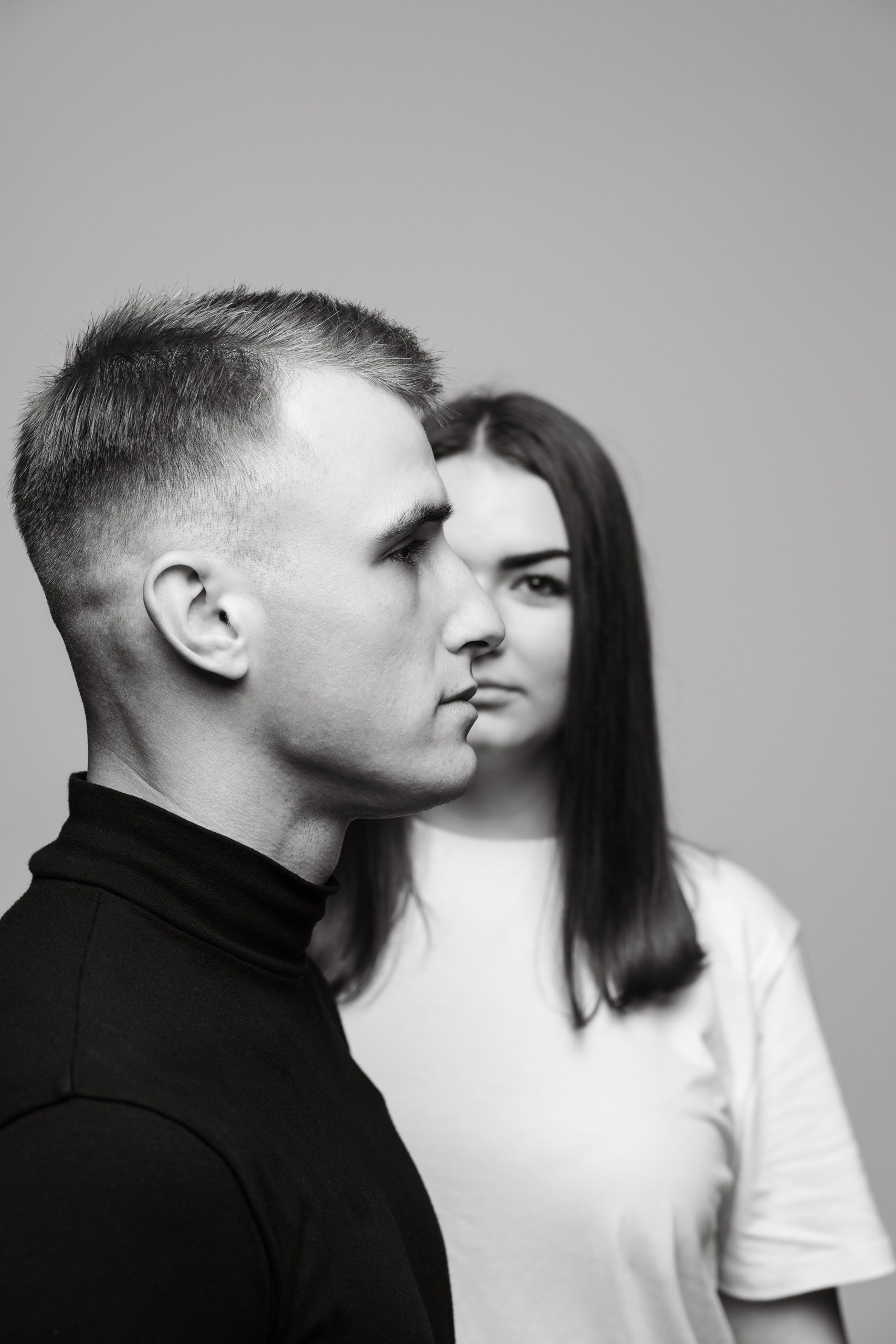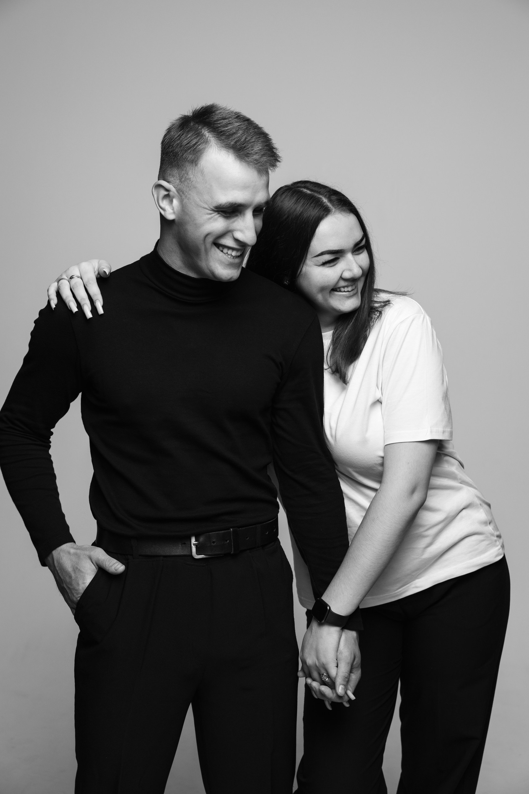 Сюжет и контекст: зависит от пары, их внешности, рода деятельности или увлечений, того кем они считают себя сейчас или кем хотят стать, их отношению к этому и психологического состояния — текущего или к которому они стремятся. Исходя из этих данных расписывается сценарий съемки, композиции и фактура. Подбирается 2 образах для каждого — в белом и черном вариантах. Показываем теплоту отношений, драматические моменты и прочие разнообразные ситуация в паре в черно-белом исполнении.