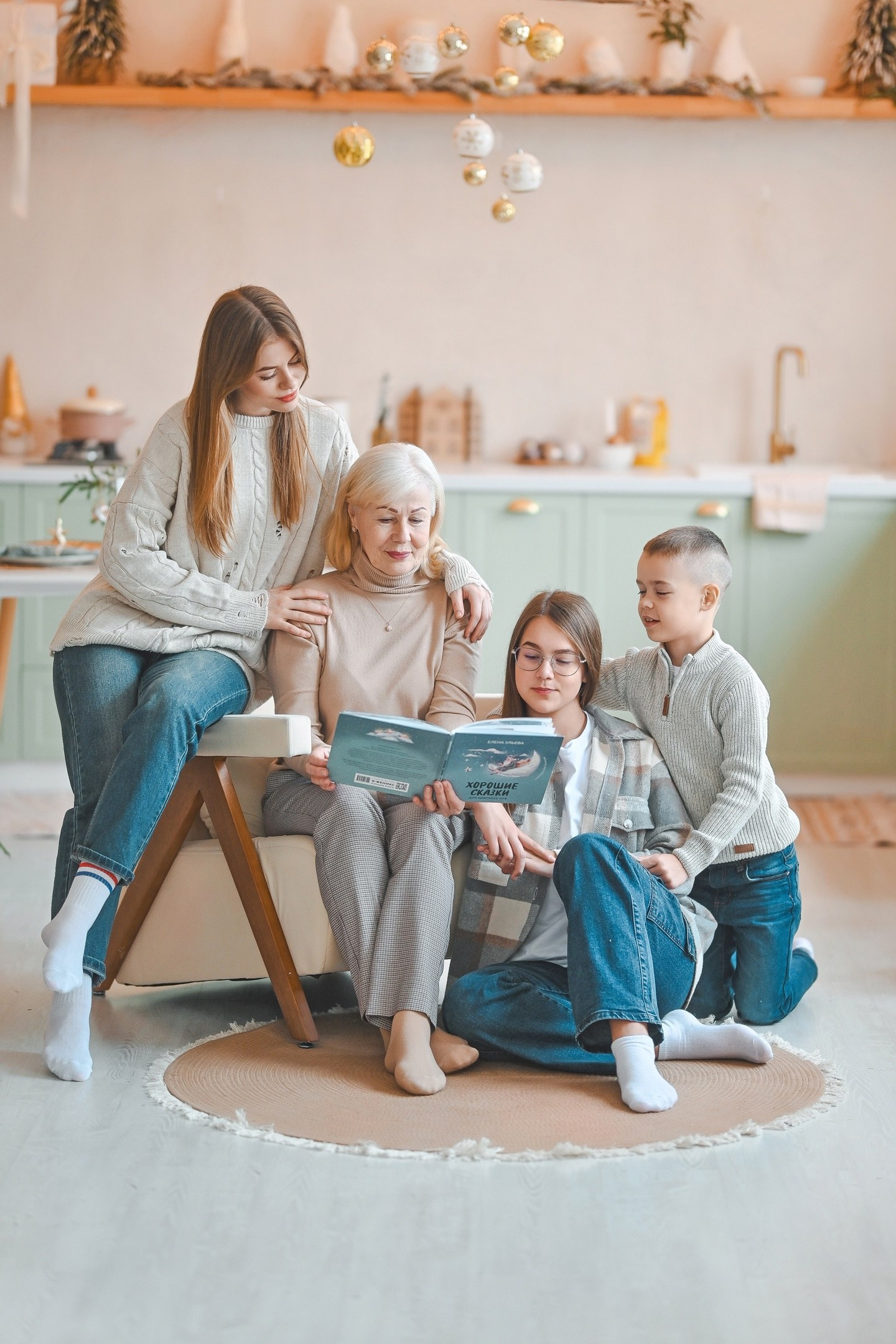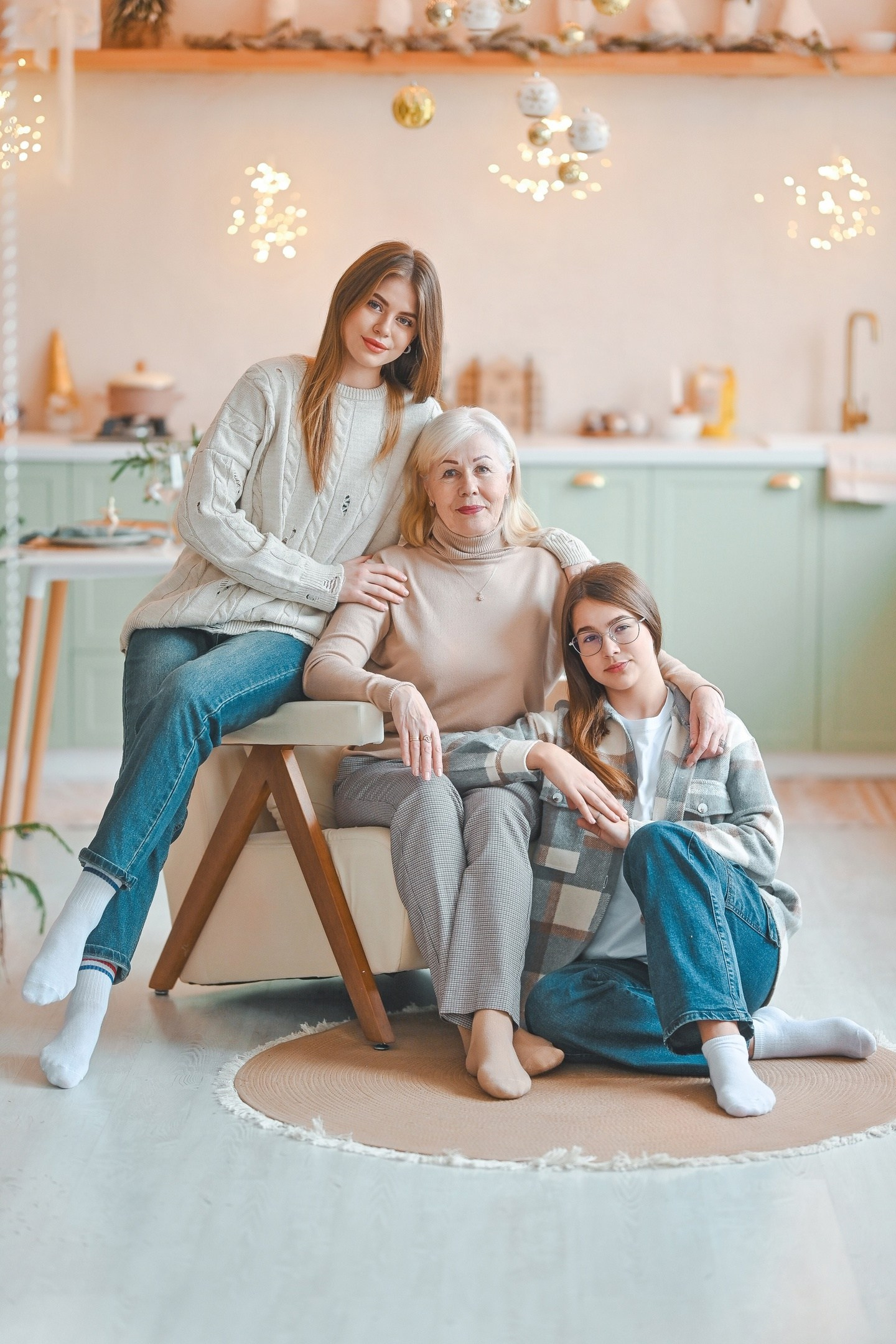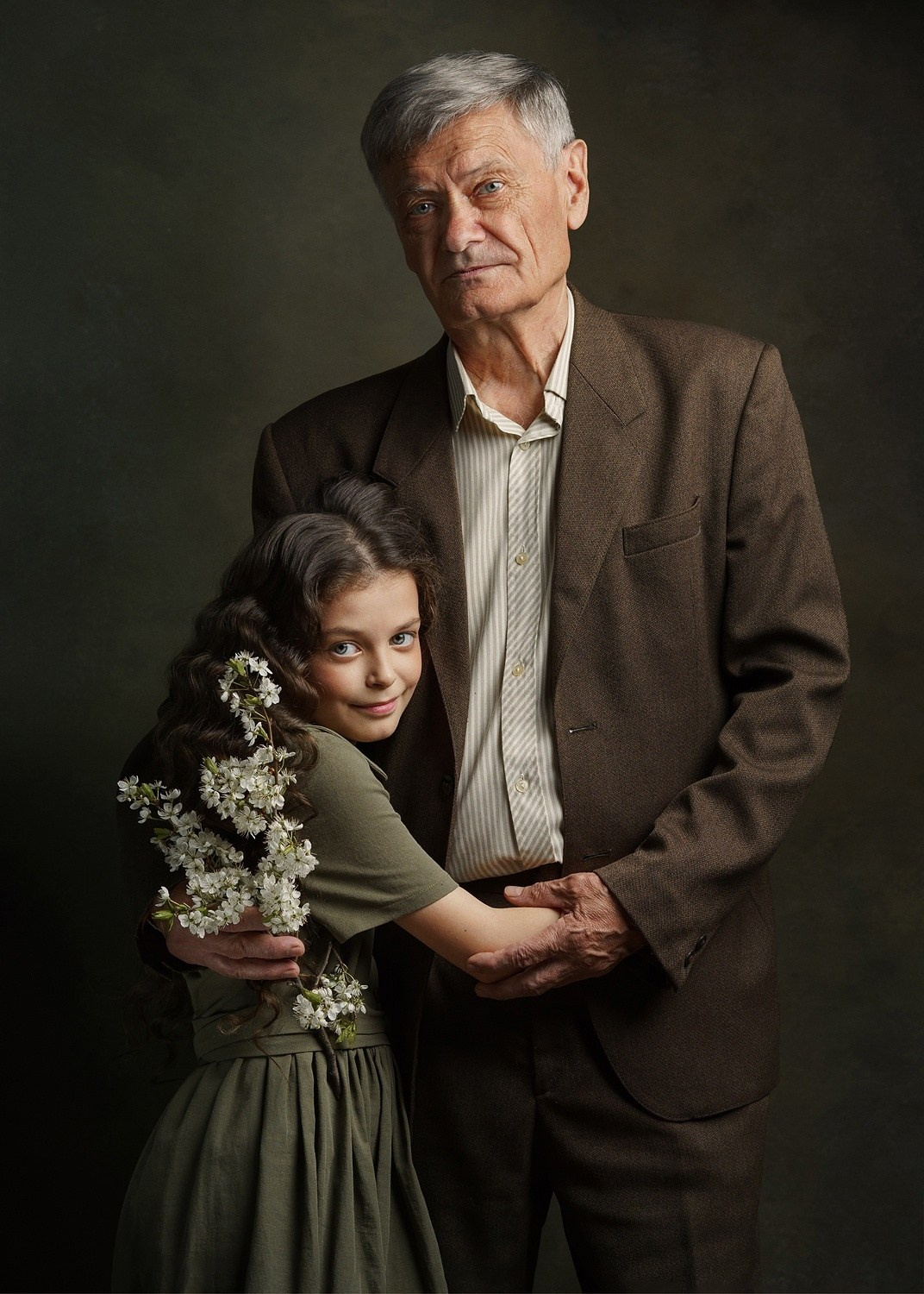 Сюжет и контекст: зависит от семьи, их внешности, рода деятельности или увлечений, того кем они считают себя сейчас или кем хотят стать, их отношению к этому и психологического состояния — текущего или к которому они стремятся. Исходя из этих данных расписывается сценарий съемки, композиции и фактура. Подбирается 1 образ для каждого в гармоничной сочетающейся не яркой светлой цветовой гамме. Показываем теплоту, любовь между поколениями.