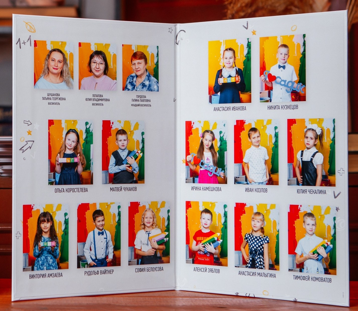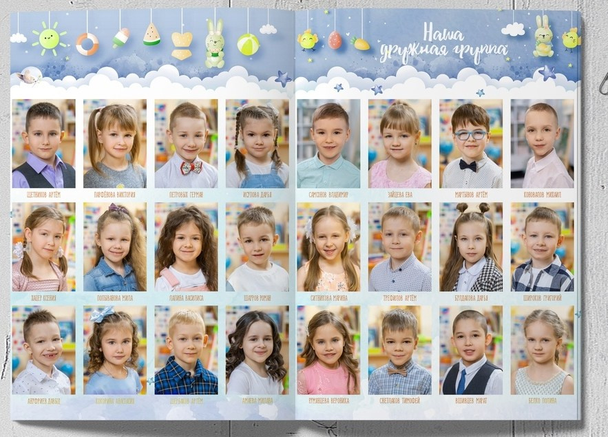 Не обращаем внимание на графическое оформление. Смотрим только на то, как будут выглядеть дети на развороте